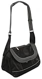 Sherpa sport collection sport sack for small pets. This carrier features awesome styling and mesh panels for ventilation. With an easy to use top entry system and a convenient shoulder strap - pet owners are falling in love. Mesh panels for ventilation. Top entry. Convenient shoulder strap. reflective trim for safety. Size: medium, color: black. Measures 11-1/2-inch length by 16-inch width by 9-inch height.