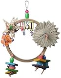 One of our new favorites! Your bird will have a hoot with this well outfitted toy that also serves as a great swing. The very eclectic selection of natural, wood, paper and plastic parts will keep your parrot occupied. Design with the medium size bird in mind.