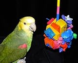 The Birdy Cubed contains wood chews, FunLand Characters and Dinos all fastened to a 5" Wooden base with our bird safe Poly Rope. Bird Toy also contains Tropical tubes.
