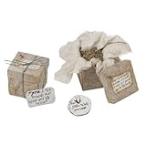It can be a time of great sadness when a beloved dog passes away, and this memorial box offers a unique way to commemorate that friendship. The rough-hewn, paper-pulp box contains two special treasures. First, wrapped in natural linen, is a bundle of wildflower seeds. Scatter then outside a window, near a door, or someplace special to you and your pet, and soon you'll be greeted by a garden of blue forget-me-nots. Second, the box holds an engraved pewter coin for you to always keep with you, to remember your animal friend. Handmade in California. Coin comes with your choice of two phrases: "My soul used to hold my body. Now I prefer to hold your heart," or, "I fell through your heart into heaven. Thank you for showing me love."Each is one-of-a-kind and will vary slightly. Miniature plastic figurine on top will vary.