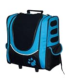 The Pet Gear I-GO2 Escort Roller Backpack is the easiest way to travel with your pet, whether you're traveling by airplane across the country, camping in the woods, or just making a quick trip to the grocery store. It was designed and developed to provide the highest levels of simplicity and comfort for both you and your pet. The I-GO2 Escort Roller Backpack has 5 convenient functions. Not only is it a backpack, but it's also a roller bag with a telescoping handle, a car/booster seat, a travel carry-on approved by most airlines, and a hand-carried tote bag. The I-GO2 Escort Roller Backpack measures 17 x 12 x 9 inches and holds up to 15 pounds.