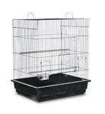 Prevue Pet Products Square Top Parakeet Cage Black SP25212B/B is ideal for parakeets, cockatiels, lovebirds and other similar-sized birds. This spacious Parakeet cage includes a bottom grille with pull-out plastic bottom tray for ease of cleaning, plus 2 wood perches (1/2-inch diameter) and 2 plastic hooded cups. Classic and sleek looking,Prevue Pet ProductsBlack Square Top Cage measures 25-inch L by 21-inch W by 29.5-inch H with 1/2-inch Wire Spacing.